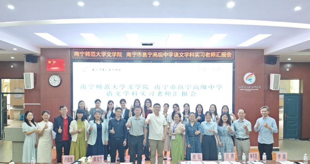 22级陶班教育实习总结会在邕宁高级中学合班教室召开。院长石勇、带队老师朱冬夏、李颖,邕宁高级中学各位领导、指导老师和12名跳蛋视频