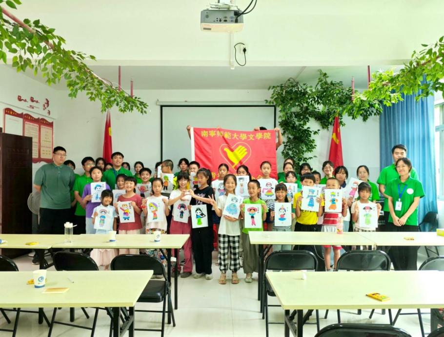 本期义务家教活动的主要内容是展现民族服饰风情。课堂上,教员们借助PPT向小朋友们展示壮锦图案样式与寓意,从壮族拓展到各少数民族服饰文化,苗族银饰、藏族氆氇等服饰文化引起了小朋友们的好奇心。教员们通过PPT小游戏展示服饰图片和实物细节,开展民族名称抢答活动,小朋友们踊跃抢答,现场气氛热烈。最后,志愿者们分发填色图纸,开展“我为民族服饰添色彩”绘画活动,小朋友们发挥想象力,为民族服饰勾勒五彩颜色,在创作中感受民族文化魅力,并现场分享自己的绘画理念以及对民族文化的理解。