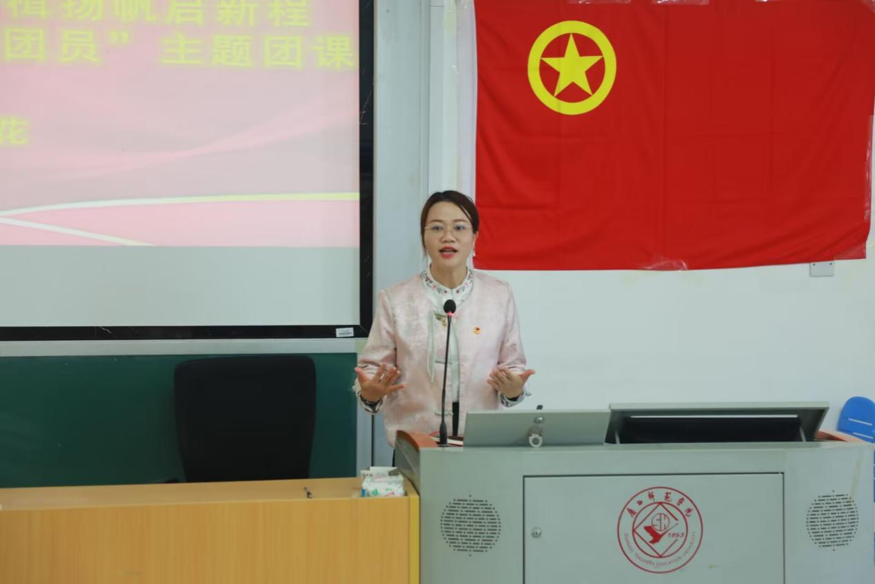 于文科综合楼915教室开展以“挺膺担当砺青春,奋楫扬帆启新程——做时代合格团员”为主题专题团课,本次团课由钟振花老师主讲,全体团员参与学习。