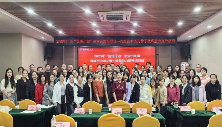 承办的2025年“国培计划”来宾市统筹培训项目——县级初中语文骨干教师能力提升培训班圆满落幕。本次培训为期8天,汇聚来宾市66名县级初中语文教师,通过专题授课、基地研修、实践交流等多元形式,助力教师提升专业素养与教学实践能力。