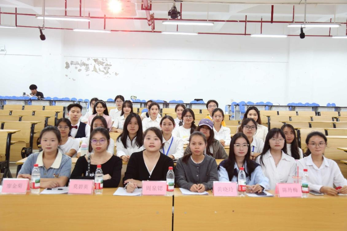 辅导员周泉锶,研究生廖金菊、莫碧英,团委副书记黄晓玲、陈丹梅出席并担任评委。