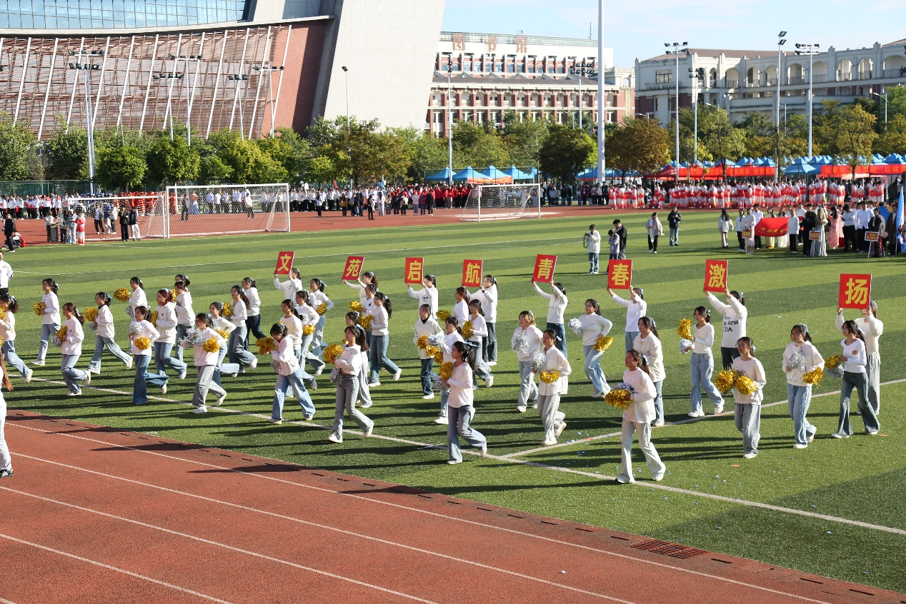 方块队带来精心编排、活力四射的团体操表演,动作整齐划一,舞姿活泼轻快,嘹亮的口号展现蓬勃朝气与团结精神。
