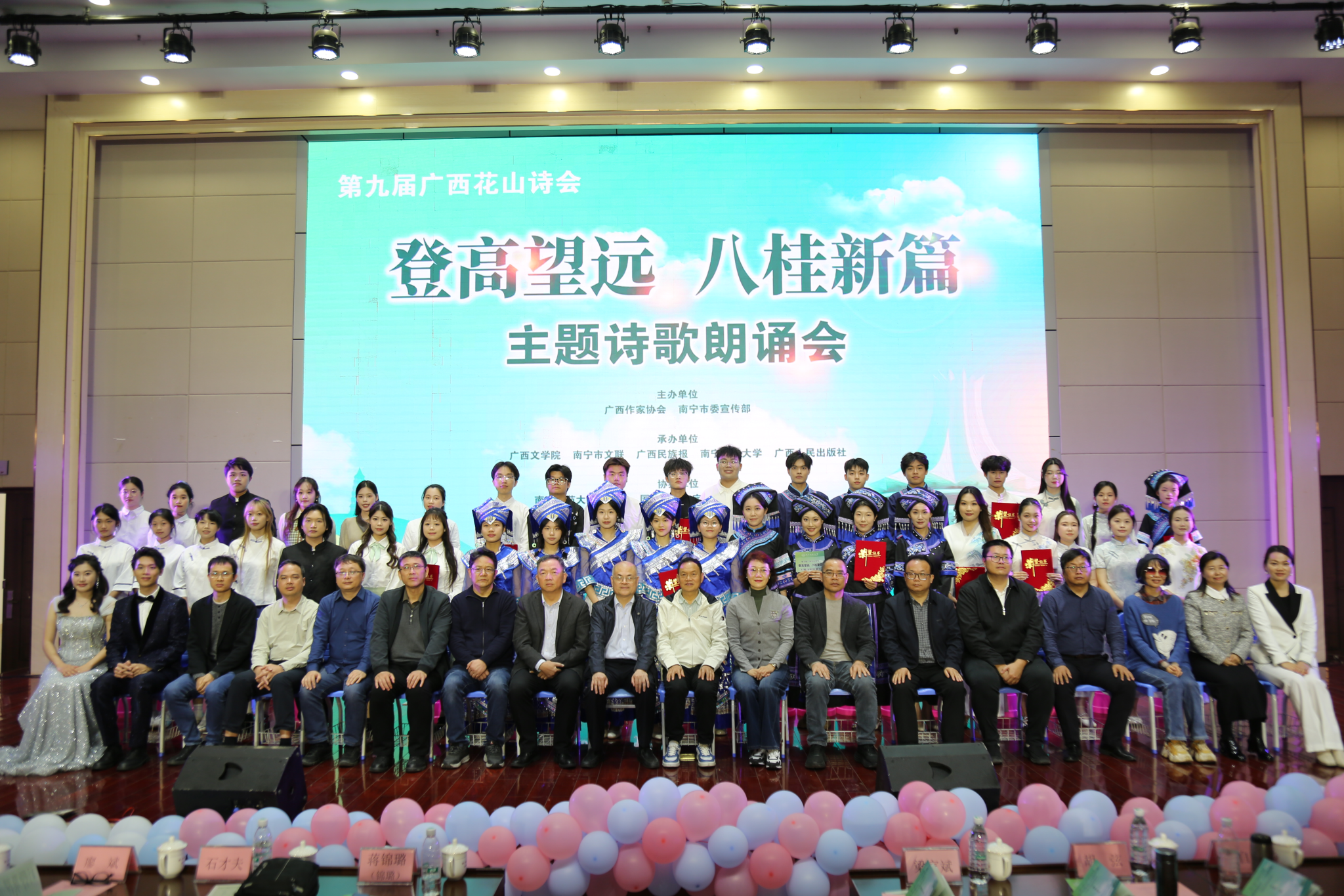 花山诗会自2017年创办以来,历经八载深耕,从幼苗成长为广西文化领域的闪亮名片,承载着弘扬地域文化、繁荣诗歌创作、培育文学新人的重要使命,为八桂大地的文化繁荣注入了源源不断的生机。本届广西花山诗会主题诗歌朗诵会的成功举办,充分展示了我校学子在诗歌创作与朗诵方面的才华与热情,不仅提升了学生的文学素养,也为校园文化注入了新的活力,进一步推动了文学艺术在青年一代中的传承与发展。