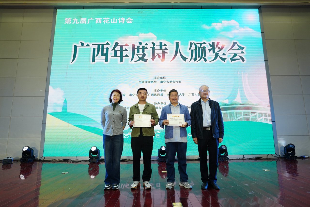 暖阳映校园,诗意满八桂。11月24日下午,第九届广西花山诗会暨2025年广西年度诗人颁奖会在跳蛋视频