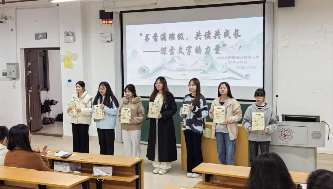 2025级汉本四班及五班于2025年11月18日在文科综合楼的915教室举办读书分享会。