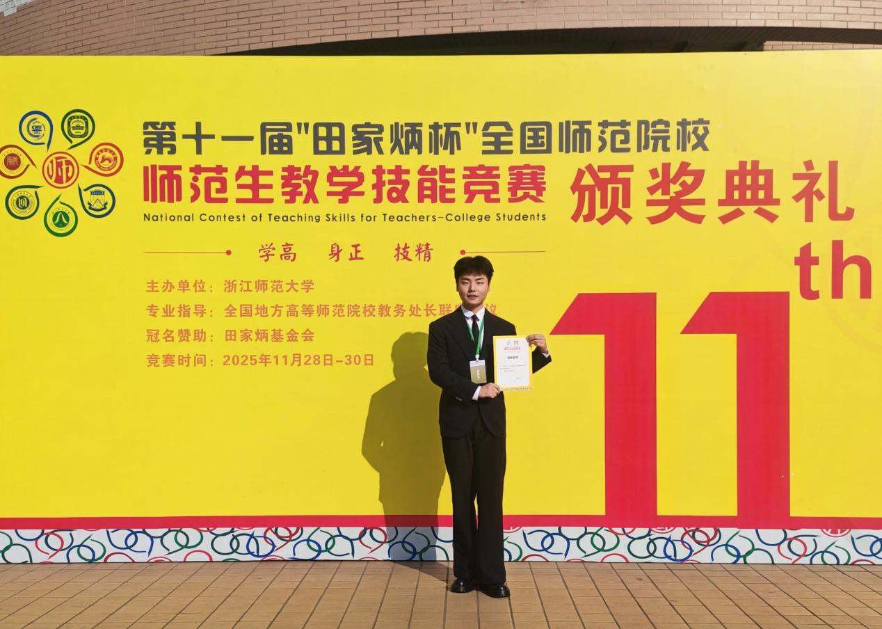 2023级汉语言文学专业陶行知实验班聂佳星同学在指导老师黄铮、黄斌、王毅的悉心指导下,凭借扎实的专业素养与出色的教学表现,荣获全国一等奖。