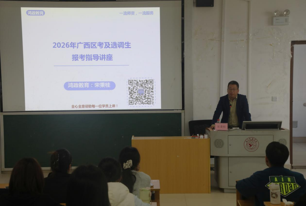宋秉桂老师围绕公务员考试核心要点讲解,帮同学们明确国考、省考与选调生考试的定义、报名情况与难度差异,重点分析南宁、桂林、柳州等竞争激烈地区岗位特点,详细介绍了选调生考试要求和晋升路。最后,建议同学们根据复习进度制定备考计划,并着重强调当下就业形势严峻,同学们在参加公务员考试的同时,也应重视对其他就业岗位的争取。