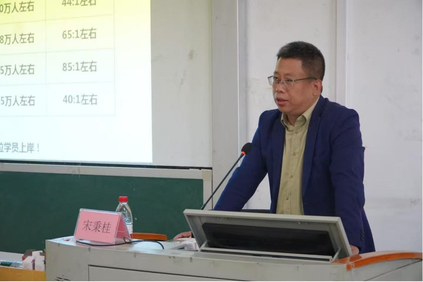 于文科综合教学楼315教室举办就业引航之公务员考试培训。讲座由韦肖莹老师主持、鸿政教育就业指导讲师宋秉桂主讲。