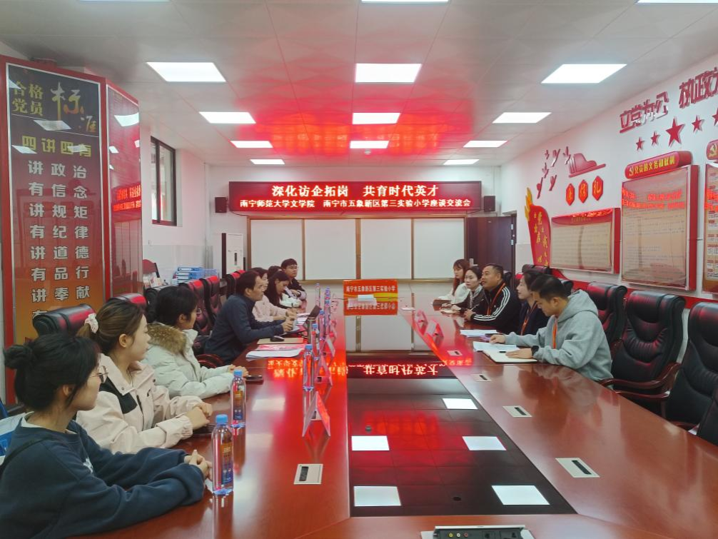 党委副书记吴幼坚、副院长张淑云一行前往南宁市五象新区第三实验小学,开展“深化访企拓岗 共育时代英才”主题座谈交流。五象三小校长梁运均、副校长沈毅等参与接待与交流;跳蛋视频