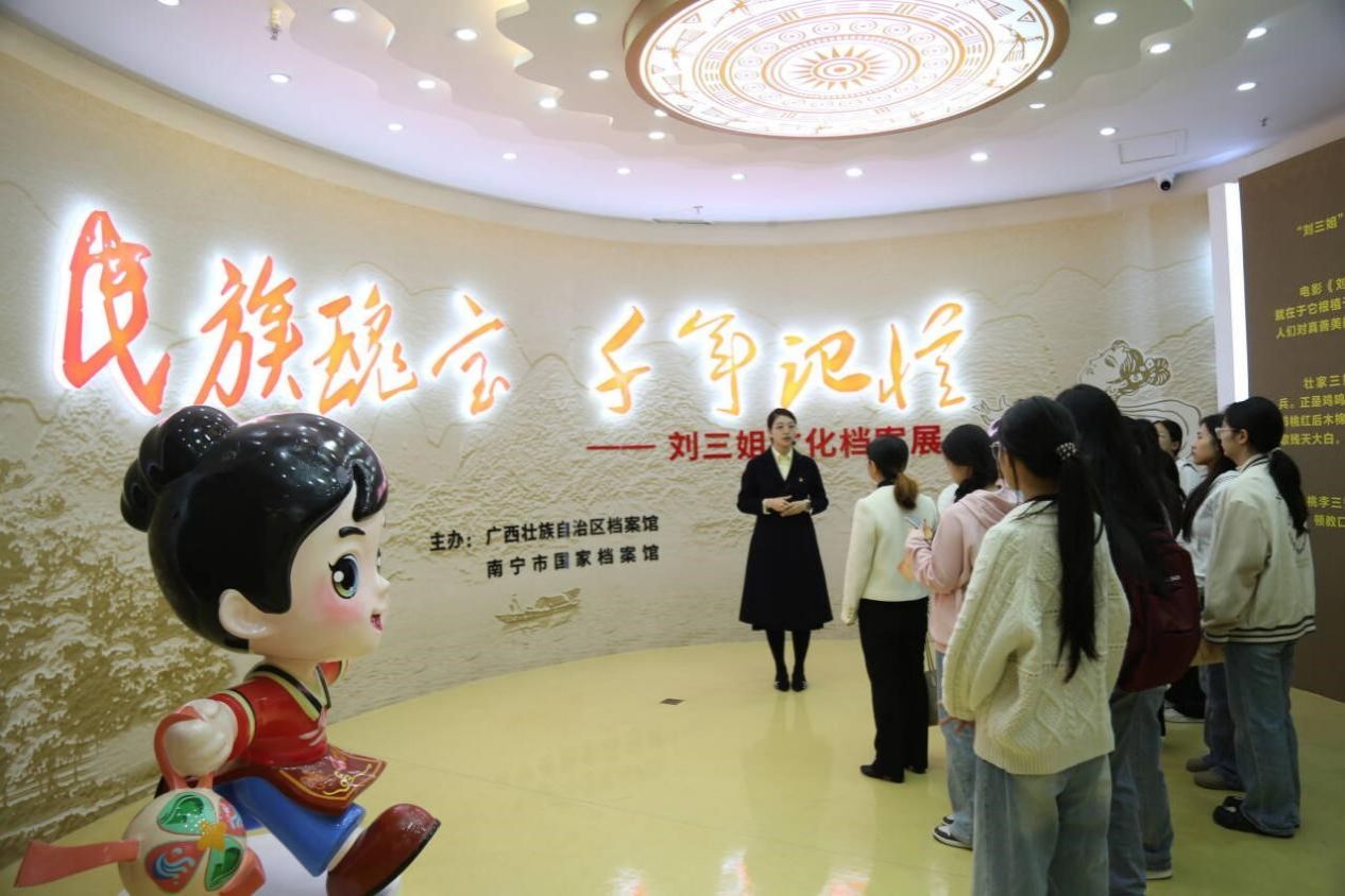 随后,一行人前往“民族瑰宝,千年记忆——刘三姐文化档案展”。展览以丰富的图文、影像及实物档案,系统展现了刘三姐文化源远流长的发展历史及其蕴含的多民族交融共生特质。跳蛋视频