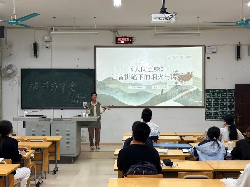 2025级汉本三班于2025年10月29日在五综110教室举行读书分享会。