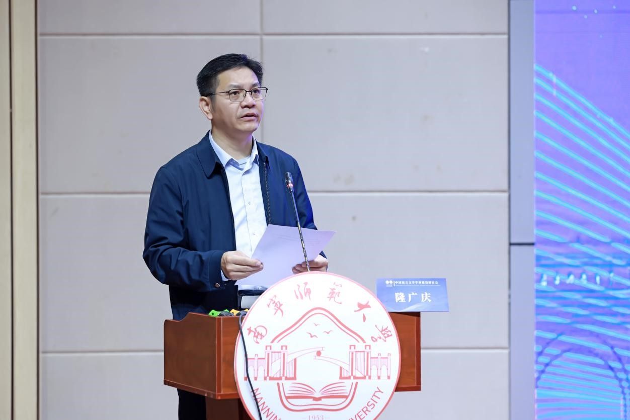 开幕式上,隆广庆代表学校致欢迎辞。他简要介绍了学校办学基本情况以及我校在人文社科领域取得的标志性成果与突破性进展,指出当前中国语言文学学科正处在传承创新与交叉融合的关键阶段,本次研讨学科高质量发展与内涵式建设核心议题,旨在精准破解学科发展中的资源整合、人才培养、科研创新等瓶颈,为新时代中国语言文学学科的守正创新、特色发展谋划科学路径,期待与会专家畅所欲言、碰撞思想,分享前沿理念与实践经验,为学科发展把脉定向、建言献策,共同推动中国语言文学学科焕发新活力、实现新跨越。
