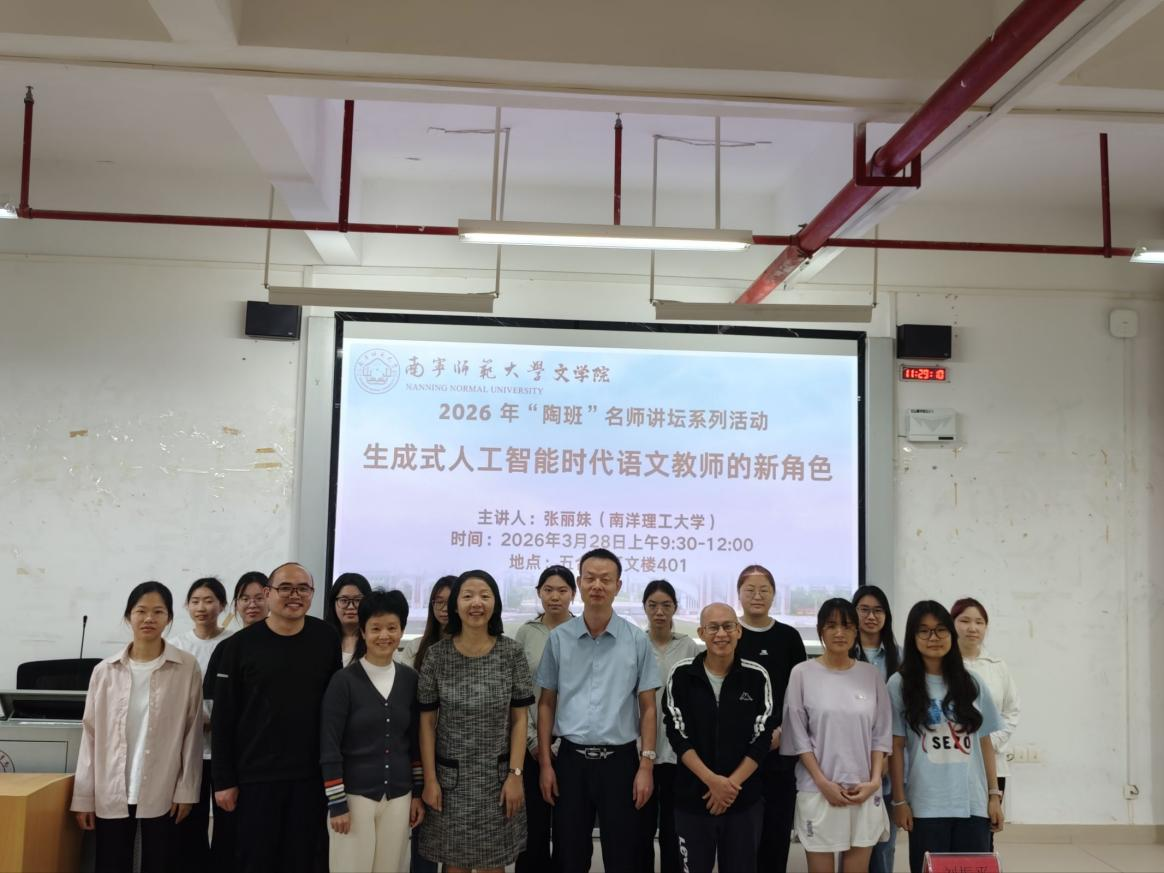 本次讲座兼具理论深度与实践指导意义,帮助师生明晰了AI时代语文教师的素养要求与发展方向,拓宽了专业素养。活动最后,张丽妹博士与我院师生合影留念,为本次活动画上圆满的句号。