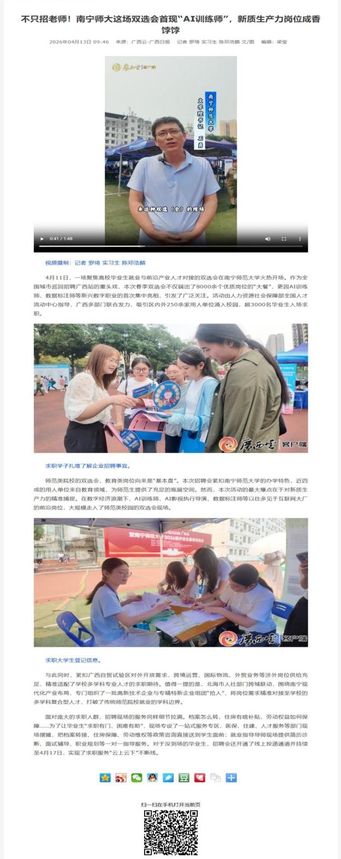 【广西云】聚焦高质量就业:我院党委书记接受广西云采访