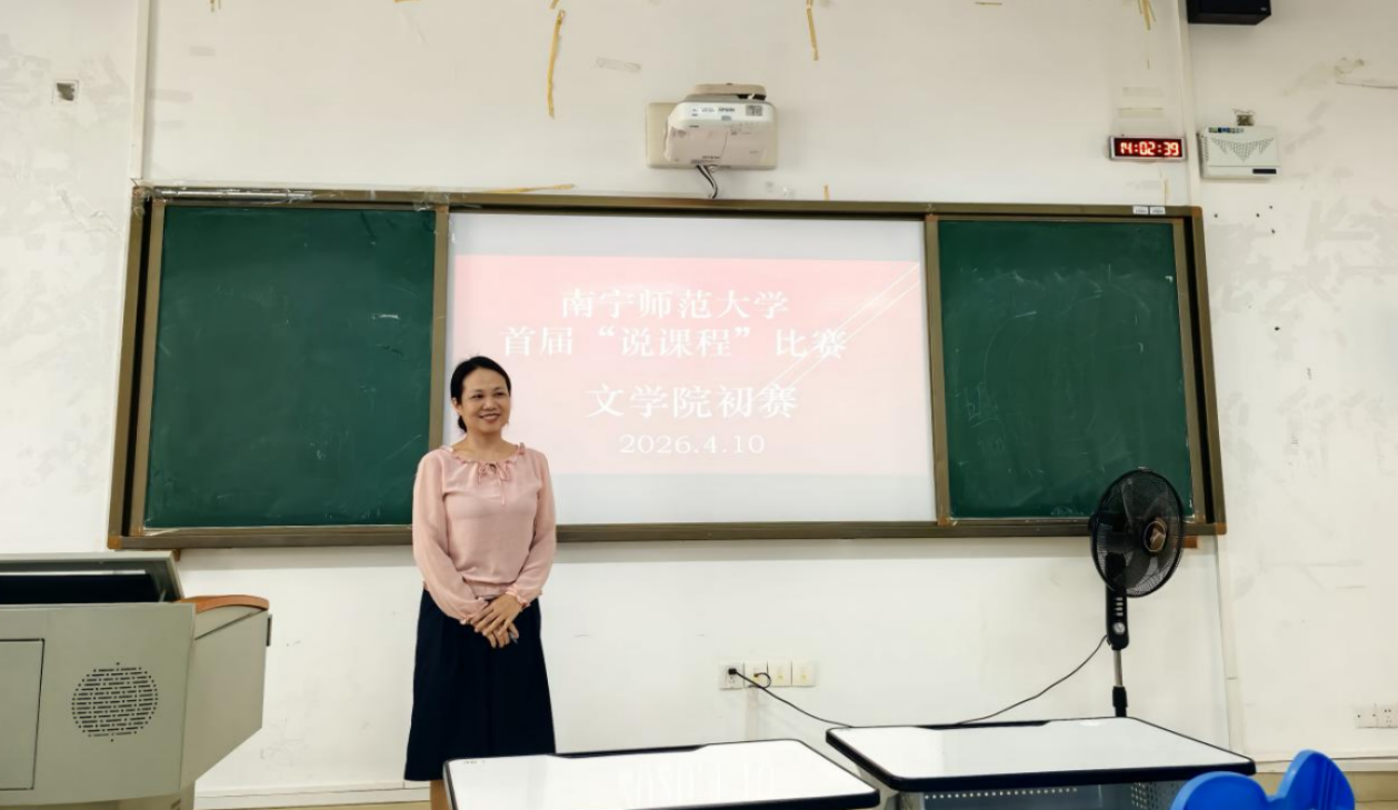 比赛中,李颖、王毅、韦露选、刘基伟等四位专任教师依次登台,在10分钟内完整阐述所说课程的整体思路、实践成效与持续改进方案。王毅以“项目驱动,依标施教”为核心思路,将《语文课程标准解读》的抽象要求转化为可操作的教学项目;韦露选围绕《汉语语法与修辞》课程,创新提出“思政融入文秘情景,逻辑绘制知识图谱,数据驱动三阶闭环,AI助力分层实训”的教学模式;李颖、刘基伟则围绕《现代汉语》进行同课异构,各有侧重地展现了专业基础课程对师范人才培养的多元支撑作用。