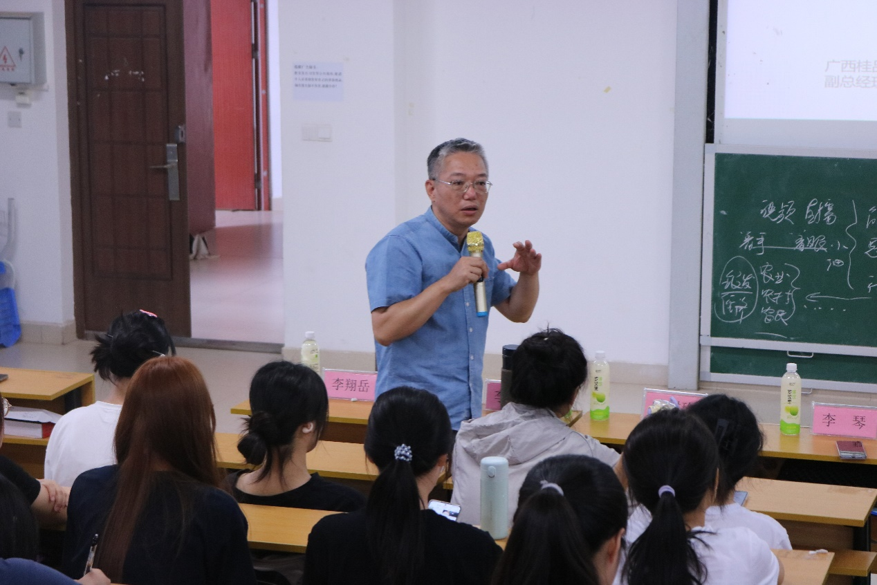 创新创业基地指导老师李志峰及广西桂品甄选传媒科技有限公司李琴、李翔岳经理出席本次宣讲会。
