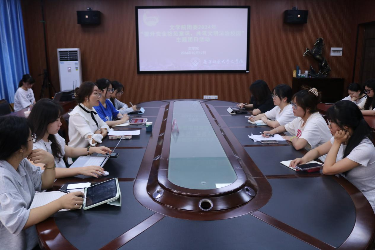 于理科综合楼404会议室开展“提升安全防范意识,共筑文明法治校园”主题团日活动。本次活动由团委书记钟振花主持,团委学生会常委、24级各班班长与团支书共同参与本次活动。