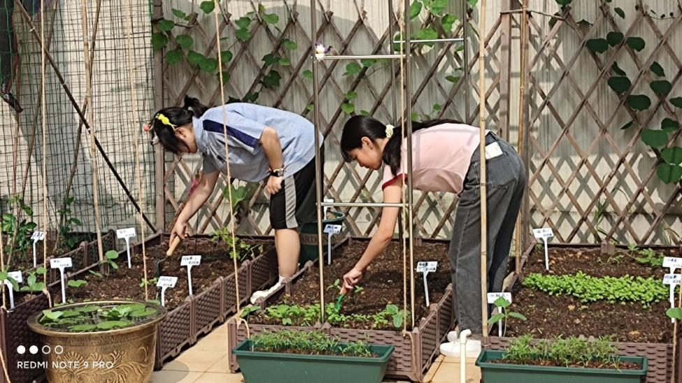 师生们纷纷上阵劳动,分工明确,精准高效,大家在老师的指导下参与了各种植物的种植与护理,通过松土、施肥、除草、浇水、固定植物生长框架等环节,让学生动手实践、出力流汗,培养劳动技能,养成正确的劳动价值观和良好的劳动品质。在大家的共同努力下,劳动实践任务得到了有效开展。