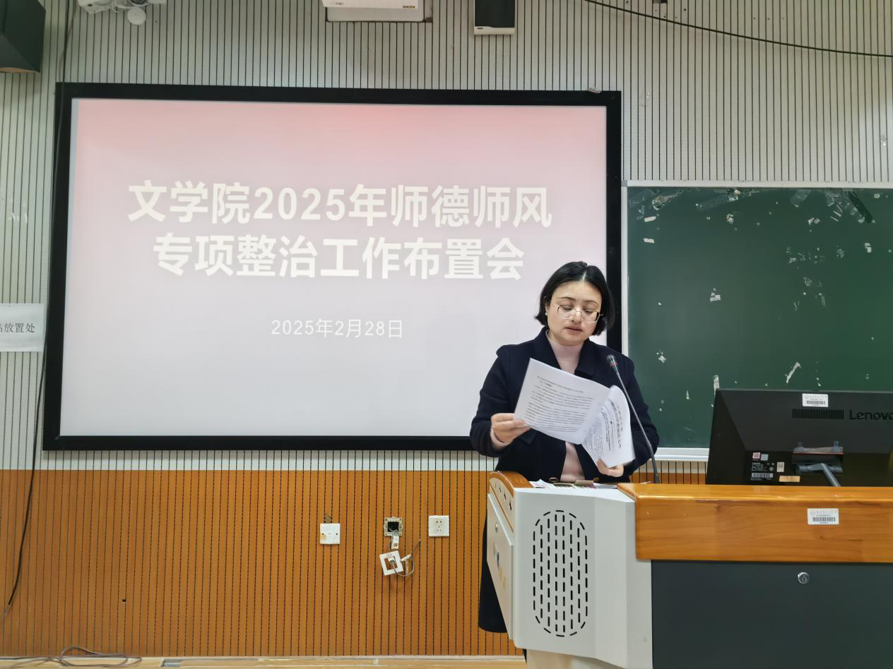 在明秀校区文星楼召开了2025年师德师风专项整治工作布置会并开展师德师风专题学习教育。会议由跳蛋视频