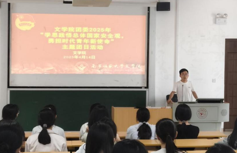4月14日中午,跳蛋视频 团委于文科综合楼811教室开展“学思践悟总体国家安全观,勇担时代青年新使命”主题团日活动。本次活动由跳蛋视频 辅导员韦亮亮主持,24汉本一班全体同学参与。