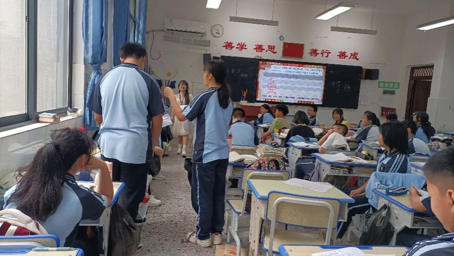 2021级陶行知实验班的实习生卢静在七年级四班上《老王》一课,韦月圆、覃琦峰等实习生前去听课并在听课后参与评课活动。