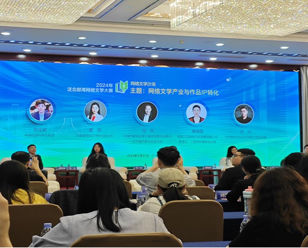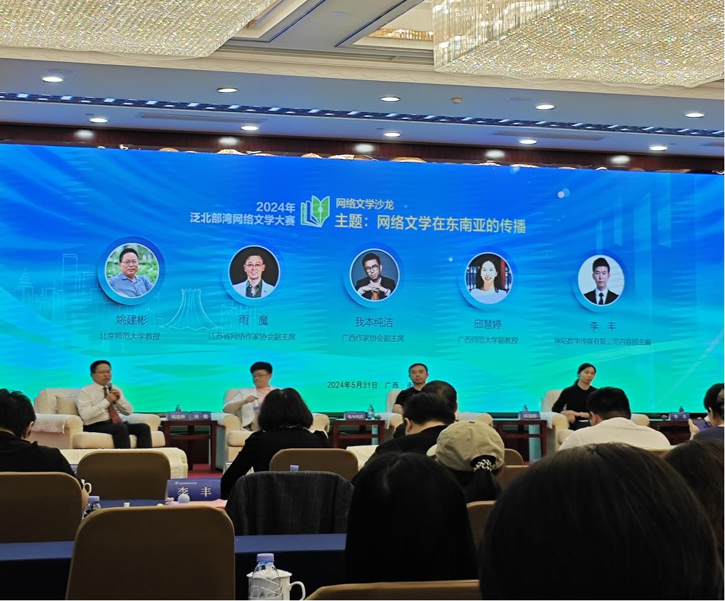 受广西人民出版社邀请参加2023年泛北部湾网络文学大赛颁奖暨2024年泛北部湾网络文学大赛启动仪式。本次活动由广西壮族自治区新闻出版局、云南省新闻出版局、海南省新闻出版局、广西壮族自治区互联网信息办公室、广西壮族自治区文学艺术界联合会、广西出版传媒集团有限公司主办,参加此次活动的有区级领导、专家代表、企业代表、网络作家代表、媒体代表等,还有各高校的领导、专家和跳蛋视频