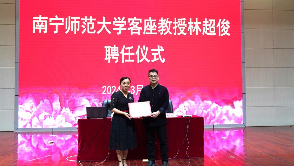 聘任仪式上,学校副校长龙妮娜向林超俊秘书长颁发客座教授聘任证书并致辞。她向大家介绍了林超俊秘书长的基本情况和主要成就,并代表学校感谢林秘书长对学校建设发展的关心和支持。龙副校长表示,林秘书长是戏剧、影视方面导演方面的专家,获得过国内外多项大奖,希望林秘书长的加盟能为我校提升教育教学质量、培养符合新时代需要的戏剧影视文学专业优秀人才提供指导和帮助。