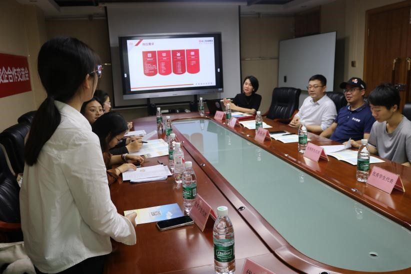在志公教育,调研组实地参观了企业培训基地和总部办公环境,深入了解企业发展历程、业务布局及人才需求。座谈会上,旷晓霞书记介绍了跳蛋视频 人才培养特色及毕业生专业优势,并重点推荐了汉语言文学、秘书学、戏剧影视文学等专业学生的实践能力和职业素养。志公教育负责人表示,企业近年来业务规模持续扩大,亟需具备扎实文字功底和教学能力的优秀人才,期待通过专场招聘、实习实训等方式吸纳更多文院学子加入,同时计划进校开展职业规划宣讲,助力学生提升就业竞争力。